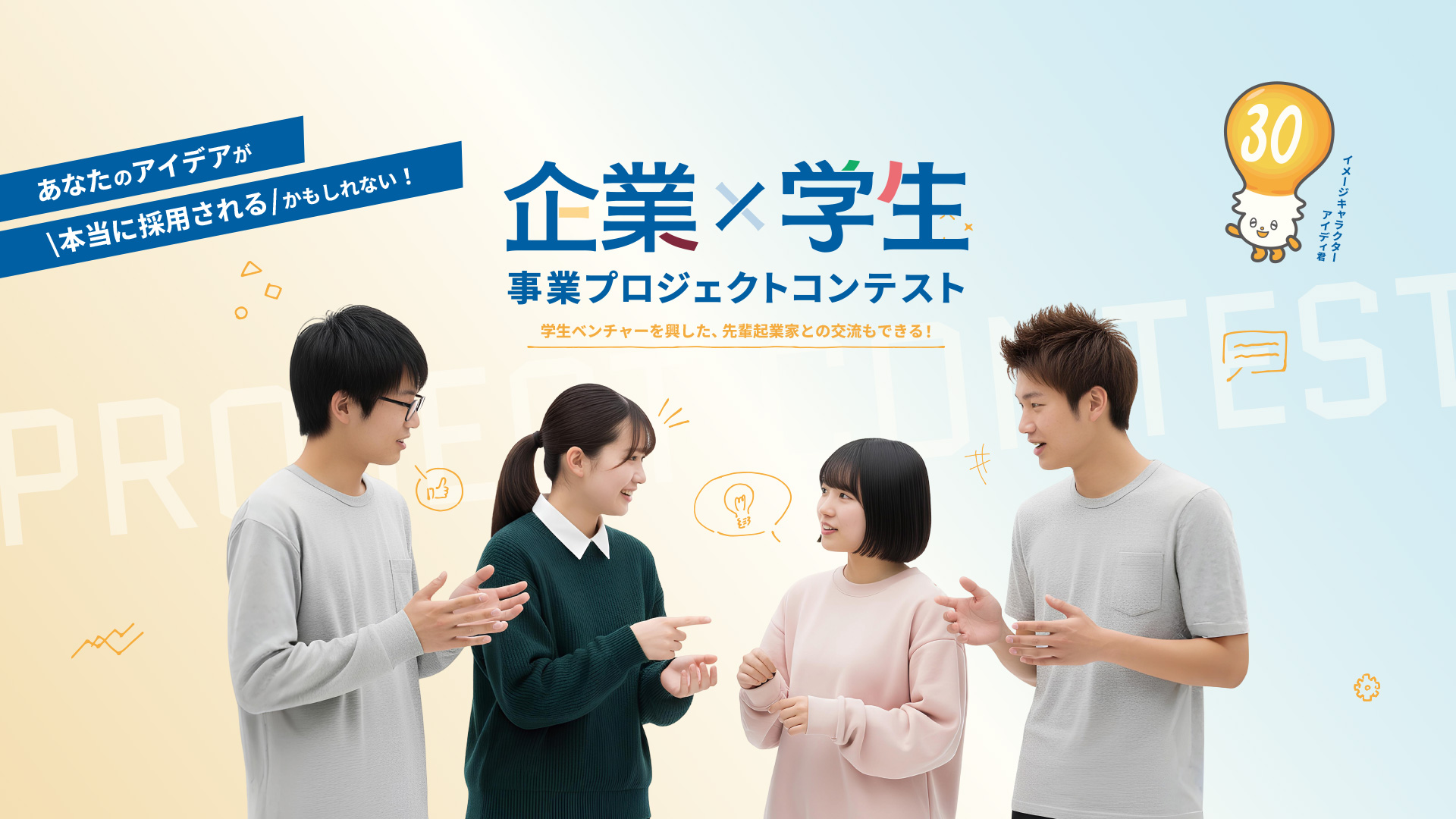 大学生・高専生が企業の実課題に対し自由な発想で提案し、選ばれたアイディアは企業と共に実現を目指します。社会に影響を与える貴重な体験ができるチャンスです。